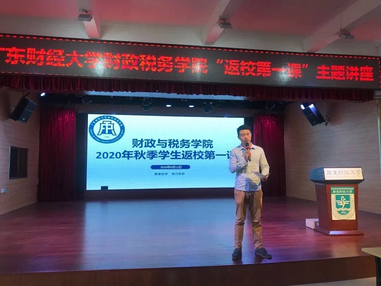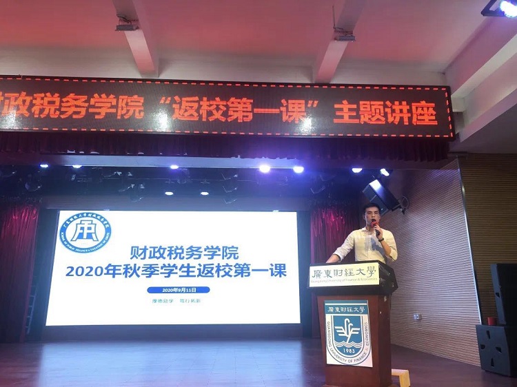 9月11号,金沙集团1862cc成色“返校第一课”主题讲座在广州校区团委学生活动中心召开。上午的讲座由辅导员李威威主持,金沙集团1862cc成色党委书记朱信贵主讲,2017级税收学(含注税)、资产评估、财政学专业全体同学参加了本次讲座。下午的讲座由辅导员黄迪主持,金沙集团1862cc成色院长庞磊主讲,2018级税收学、资产评估、财政学专业全体同学出席了本次讲座。