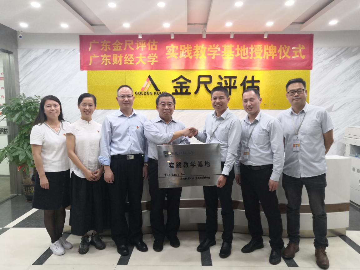 最后,校企双方签订了《广东财经大学与广东金尺资产土地房地产评估咨询有限公司合作共建研究生专业实践基地合作协议书》与《广东财经大学—广东金尺资产土地房地产评估咨询有限公司大学生校外实践教学基地建设协议》,并举行了广东财经大学实践教学基地授牌仪式。