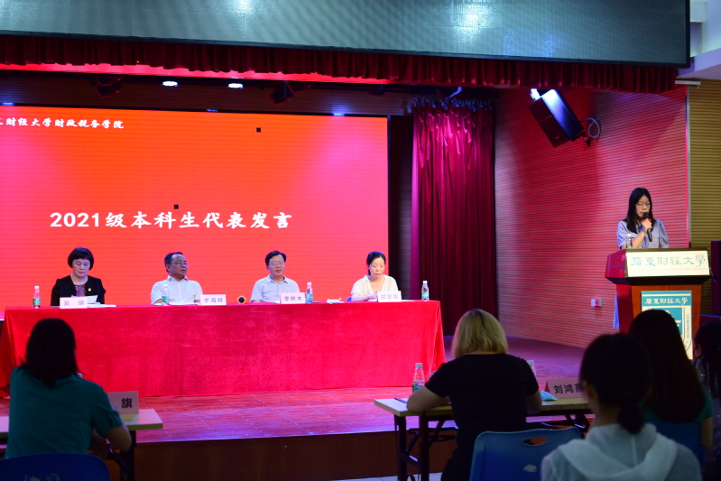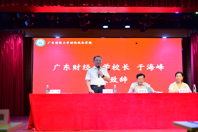 院长李林木教授介绍了学院的基本情况,并寄语新生要有明确的志向目标、有优秀的思想品德、有强劲的学习能力、有过硬的综合素质,争当自主、自立、自强的财税学子。