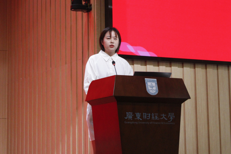 广州校区研究生南含月、本科生盛晴和佛山校区研究生余佳萱、本科生朱睿分别代表新生发言,她们倡议同学们恪守“厚德、励学、笃行、拓新”的校训,拥有上下求索的毅力,拿出乘风破浪的勇气,做奋进自律广财人。