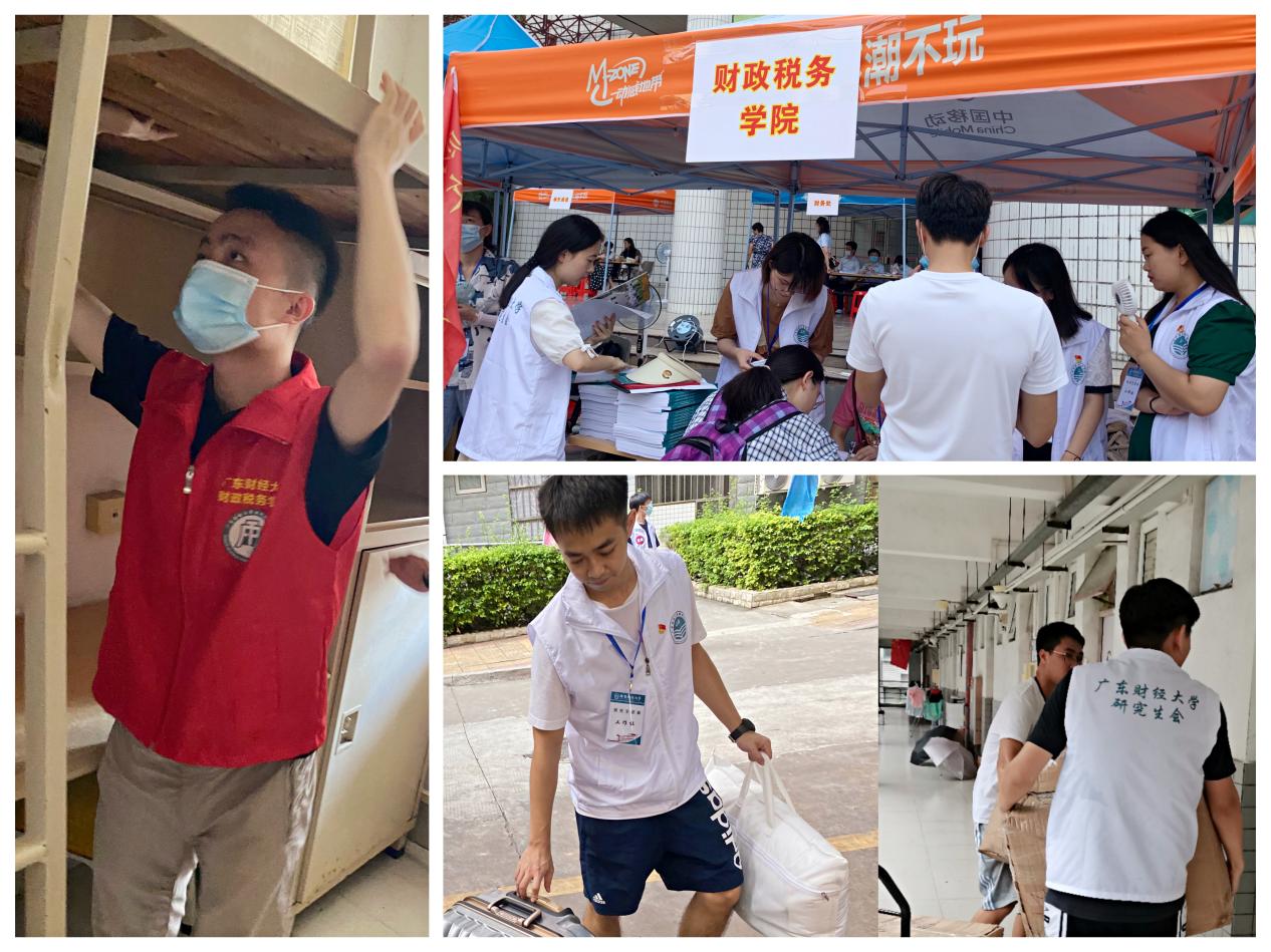 学院志愿者进行宿舍检查,为新生审核入学材料及搬运行李