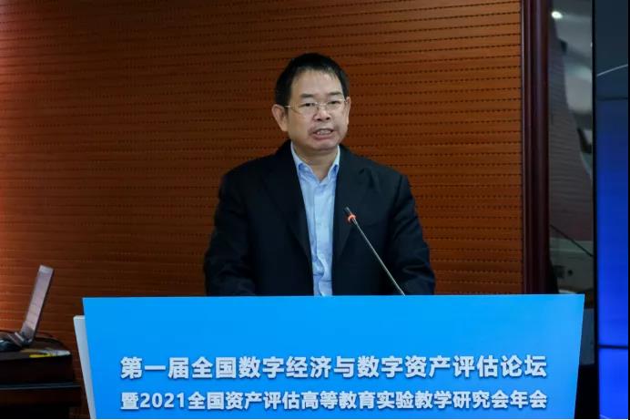 第一届全国数字经济与数字资产评估论坛暨2021年全国资产评估高等教育实验教学研究会年会是在十九届五中全会发展数字经济精神的指引下召开的,旨在探讨如何在数字经济的背景下推进数字资产化和资产数字化,建立数据资源的产权、交易流通、跨境传输和安全保护等基础制度和标准规范,推动数据资源开发利用。原财政部资产管理司巡视员张国春、中国资产评估协会副秘书长庄伟、我校党委书记郑贤操、副校长邹新月、中南财经政法大学工商学院副院长文豪、广东省资产评估协会会长曾毓昌、广东省资产评估协会副会长兼秘书长陈桓考等来自全国60多所单位的数字经济和资产评估专家在线上和线下出席了本次会议。