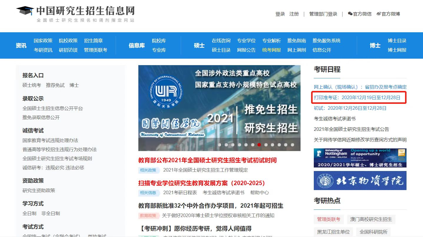 第一步:进入研招网报平台首页后,如果招生单位已上传准考证,你将看到下载链接。