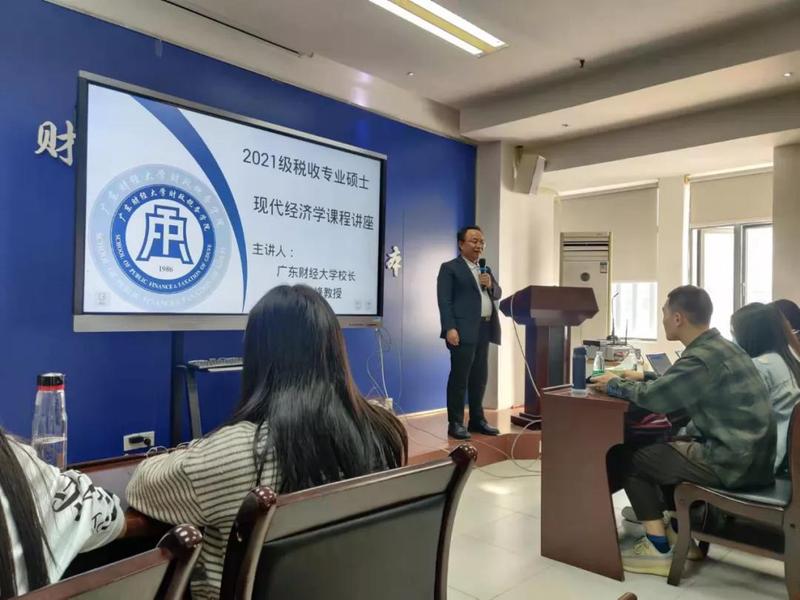2021年11月30日,由金沙集团1862cc成色主办的“财税发展史与当代税制改革”专题讲座在金沙集团1862cc顺利举行。本次讲座主讲嘉宾为我校校长于海峰教授,金沙集团1862cc陈淼副教授担任本次讲座主持人,2021级全体税收专业研究生参加了本次讲座。讲座采用线上线下相结合的方式进行,广州校区税收专业研究生到场聆听学习,佛山校区税收专业研究生采取线上方式进行学习。