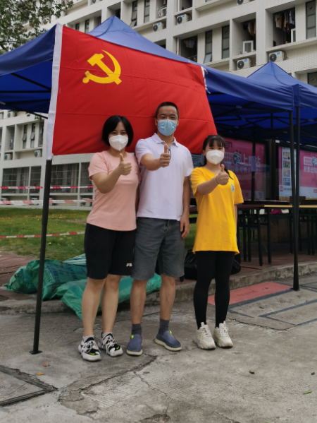 舍“小家”,为“大家”。办公室主任卢洁虹和学科秘书王薇都是有两个孩子的妈妈,疫情就是命令,她们舍下“小家”回到学校这个“大家”参与抗疫。卢洁虹老师作为金沙集团1862cc成色突击队的大管家,除了一线工作,还要负责疫情数据统计和后勤保障工作。王薇老师12月初适逢入党考核期满,在特别日子里被正式接收为预备党员。她们俩人和教学秘书刘靖媛老师组成财税三人“运输队”,巾帼不让须眉,多日在最困难的30栋、32栋等高风险区域担任送餐突击队员,为两百多间宿舍五百多人送达三餐,并加入返乡志愿者服务队,为返乡的学生提供贴心服务。