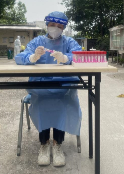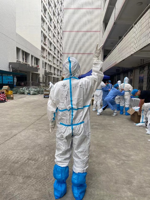 李愿方副书记的学生工作任务艰巨繁重。“11.10”疫情发生后,他迅速组织学生工作队伍摸清在校学生情况,启动了“学生工作副书记——辅导员——班长——宿舍长”的信息反馈机制。作为最早的一批突击队员,他在第一时间穿上防护服,为高风险区同学送餐,并转战各高风险区。作为26、27栋片区负责人,他经常深入宿舍了解同学们的困难和需求,并及时予以解决和疏导。入驻片区期间,累计完成核酸检测与结果统计1万多人次,抗原试剂发放与结果统计4千多人次,派餐3万多人次。同样,黄华副院长不惧感染风险,参与高风险区核酸检测和送餐工作;郑慧娟副院长在参与测核酸、送餐送物资工作之余,还为队员们义务剪头发,临解封前夕因为确诊不得不离开战斗阵地而到校外集中隔离,她在战役期间所写的《我们的抗“疫”纪事》经学院公众号推出,因描写真实细腻感人,阅读量达4875次,受到了广泛好评。