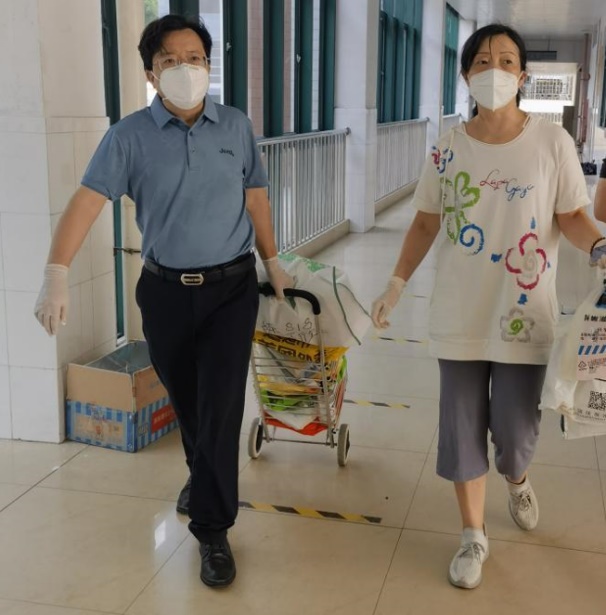 李林木院长和郑慧娟副院长给封控区学生运送学习资料 |