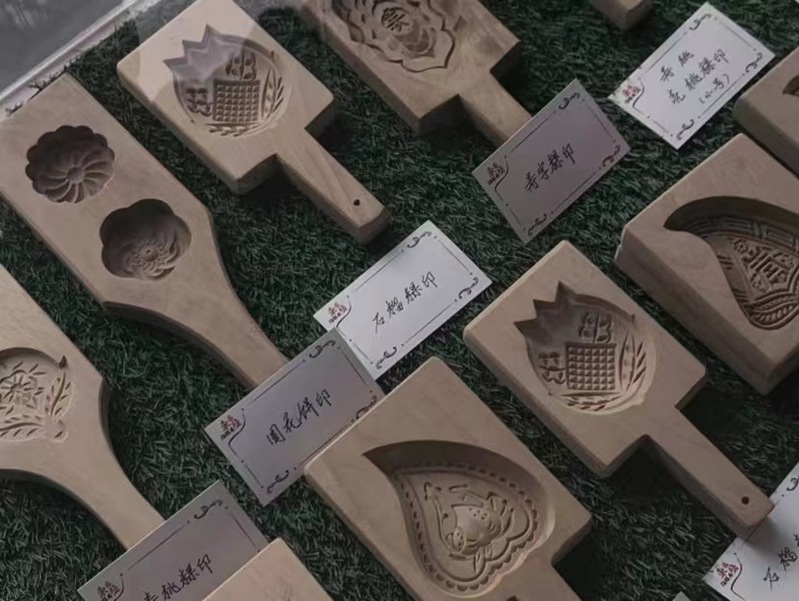 据团队学生介绍,工坊里摆放着各式各样的工具,其中极具代表性的是制作粿品所需要的粿印。工坊除了日常售卖,还开设体验制粿的环节,游客们可以在潮汕特色的红漆四方桌上亲手制作,体验非遗粿文化。