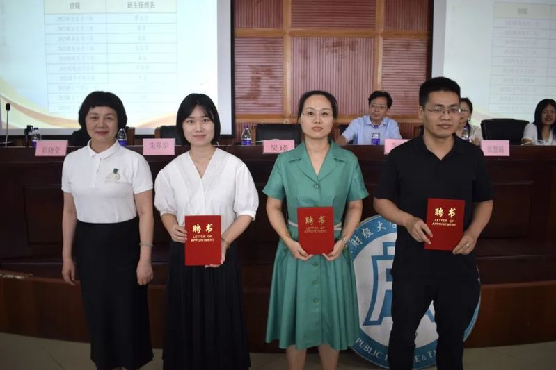 吴瑛书记为各班班主任颁发聘书。希望各位班主任和辅导员们通力配合,组建一支师德高尚、业务精湛、充满活力的高素质专业化队伍,为推进我校教育事业又好又快发展提供强有力的人才支撑。