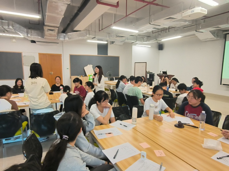 活动伊始,彭莹莹老师采用抽签的方式将同学们随机分成3个小组,以“时间接力赛”热身游戏拉开活动序幕。每个小组领取一份任务卡,成员逐个随机抽取卡片并执行任务,最先完成所有任务的小组即为获胜的一方。这个游戏迅速点燃了现场气氛,同学们纷纷体验到时间流逝带来的紧迫感,通过快速行动为小组争取获胜。